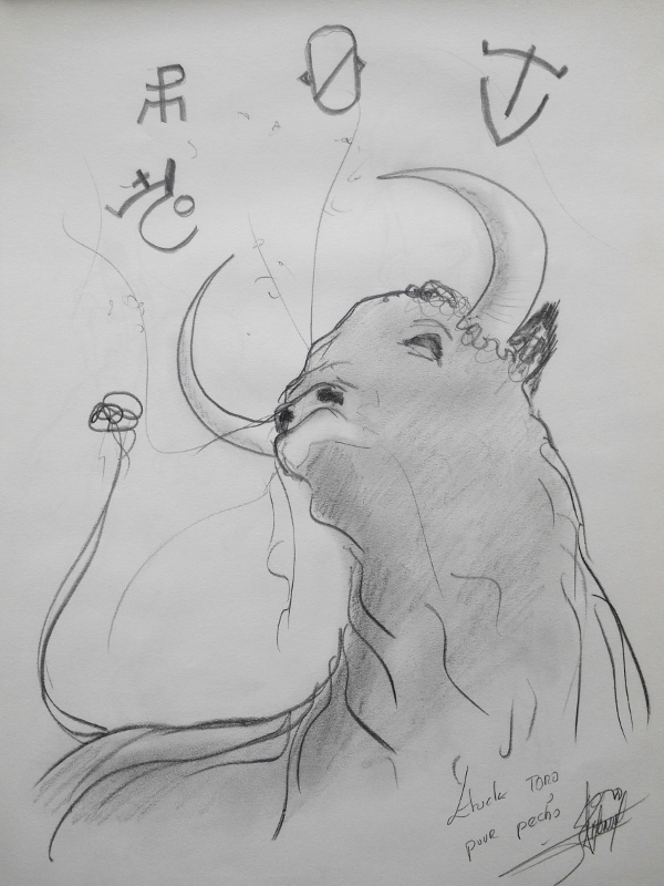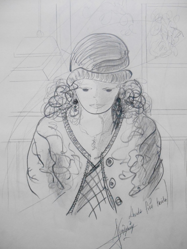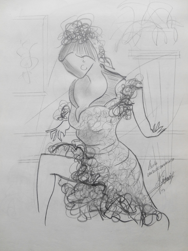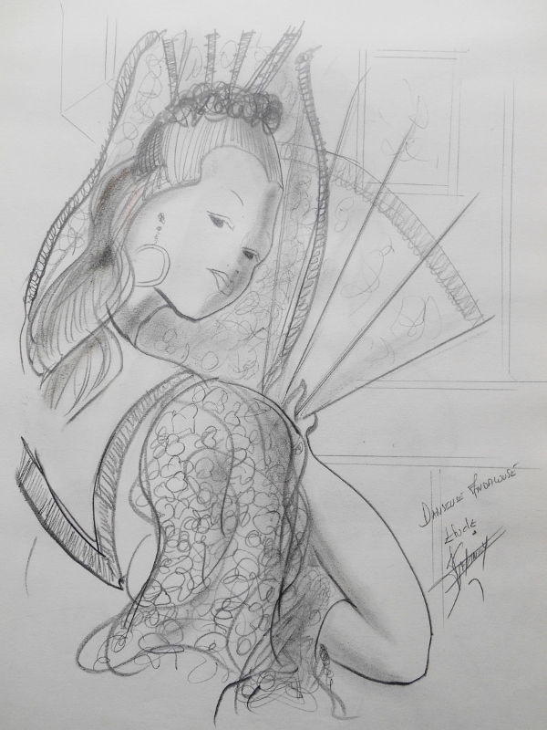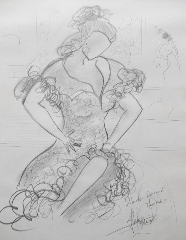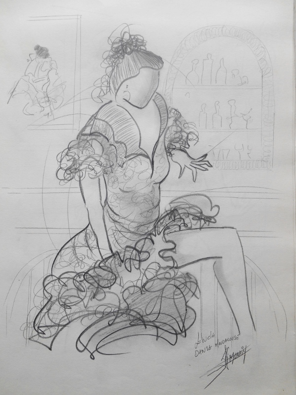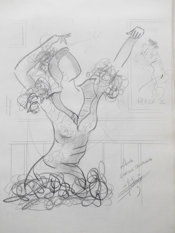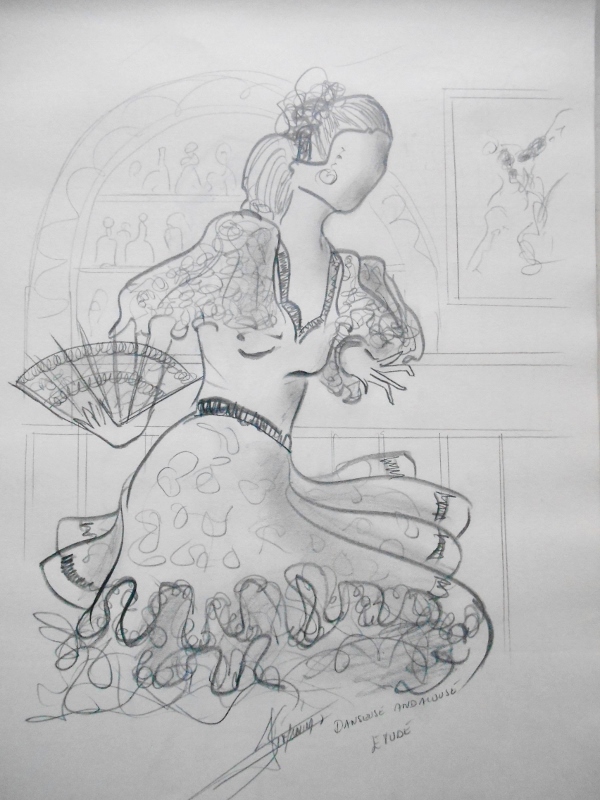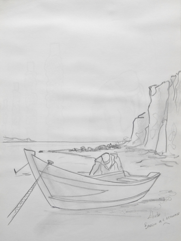 Pris sur le vif ou venu d’une inspiration, le dessin d’étude sert souvent de base pour la réalisation d’une toile. Une fois l’architecture de la toile définie, commence alors le travail de la couleur, car pour moi le sujet reste toujours qu’un prétexte au travail de la couleur